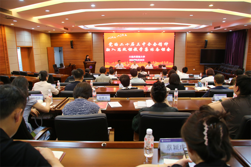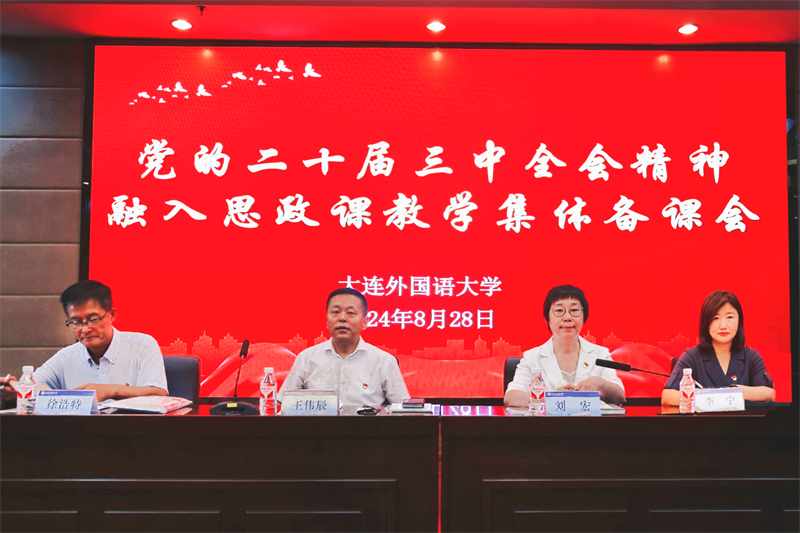 党委书记王伟辰首先作动员讲话。他从三大维度深入阐述,一是全面深入领会党的二十届三中全会的精神内核与重大意义;二是深刻把握国家教育综合改革的时代脉搏与内在规律;三是强调守正创新推动思政课建设内涵式发展。他强调,我校作为外语类高校是培养国际化人才的重要基地,其思政课建设不仅要准确传达党的最新理论成果和政策导向,更要结合国际视野,分析全球趋势,引导学生从国际比较中深刻理解中国特色社会主义的道路自信、理论自信、制度自信、文化自信。通过思政课,让学生在理论学习的同时,增强对国家和民族的认同感和自豪感,立足“国家和辽宁对外语院校的需求”和“每位学生终身发展的需要”,促进学生健康成长,促使教育助推社会发展。他希望全体思政课教师要切实把思想和行动统一到党的二十届三中全会精神上来,深刻领悟“两个确立”的决定性意义,深刻领会进一步全面深化改革的战略考量、总体要求、重大部署和根本保证,增强思政课教师的政治自觉、思想自觉、行动自觉。希望通过本次备课会,大家把党的创新理论学深悟透,不断提高学校思政课的针对性和吸引力,以扎实有效的举措推动思政课建设内涵式发展。王书记的动员讲话高屋建瓴,深入浅出,同时也是一堂学习贯彻党的二十届三中全会精神的生动党课和辅导课,为马克思主义学院思政课建设指明了发展方向。